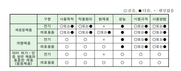허가나 인증을 받은 의료기기와 사용목적, 작용원리, 원재료, 성능, 시험규격 및 사용방법이 같은 의료기기를 의미합니다.